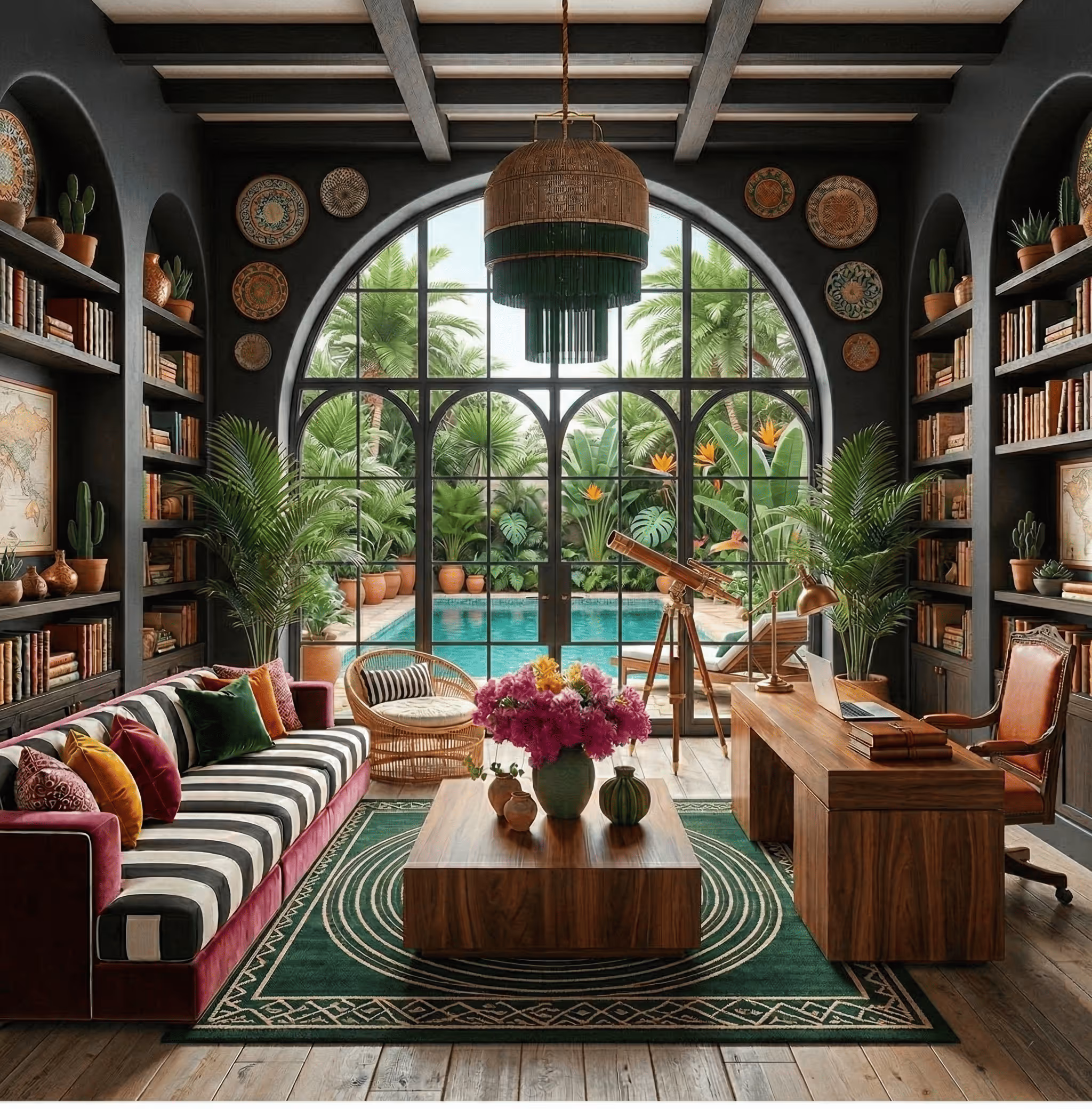А Rich Home Studio exists for people who collect memories, not just things — interiors for the well traveled soul. I design homes and boutique spaces that feel moody, art driven, and lived in, rooms that look just as good in morning light as they do at midnight.